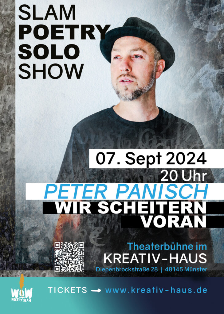 Seit 2007 stehe ich als Poetry Slammer auf den Bühnen. Einige Trophäen/Pokale und einen Meistertitel (Niedersachsen 2012) darf ich seither mein Eigen nennen. Als „Peter Panisch“ wurde ich außerdem NRW Vizemeister im Poetry Slam 2017.